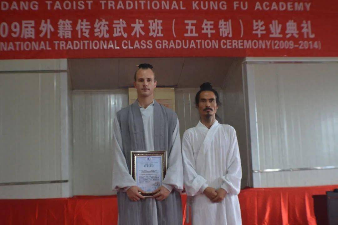 彼时,杰克正在读大学的工商管理专业。2008年,为了到武当山学武术,他申请把课程转为网课,一边上学,一边打两份工攒钱,每天只睡三四个小时。赚够一年半学费后,他决心动身,“我怕武当山将来停止招生,就永远失去学武术的机会了。”